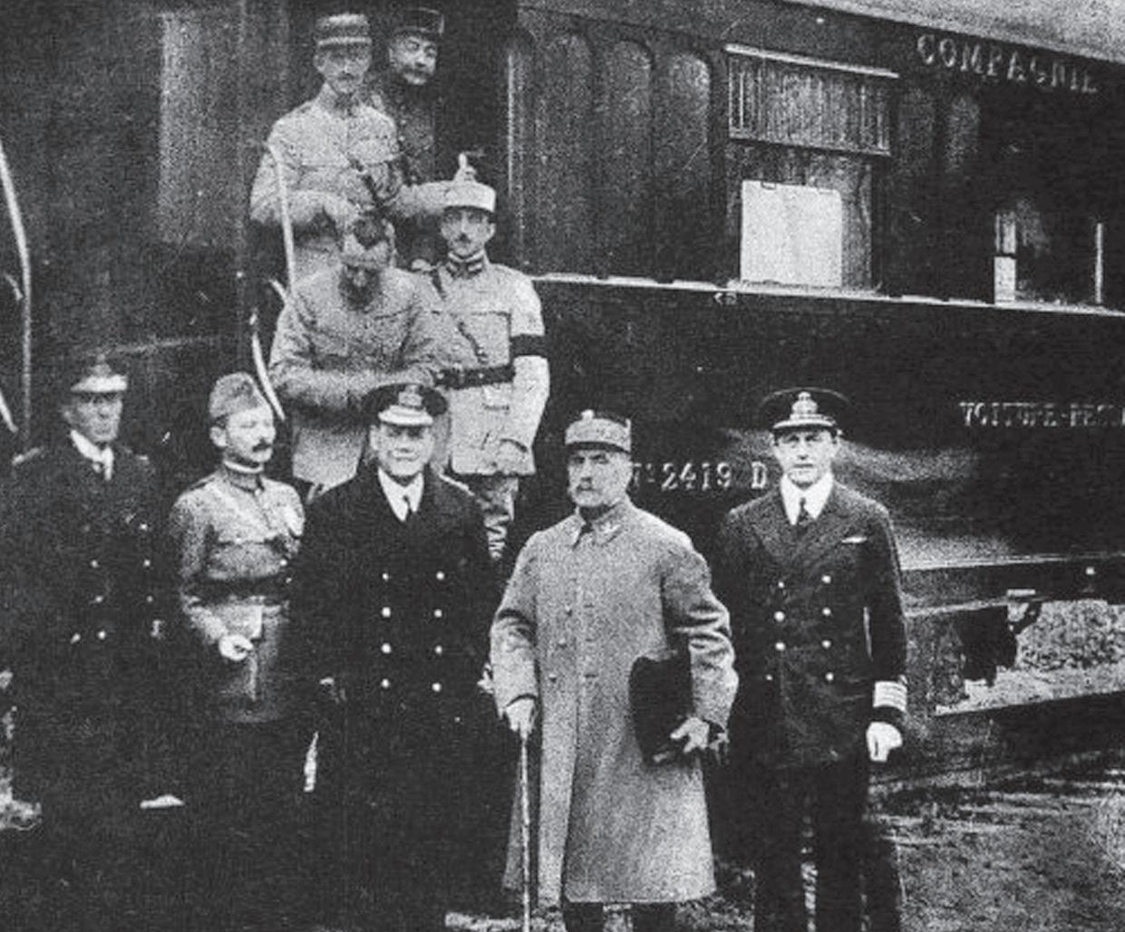 Pocos días antes, una delegación alemana había partido hacia Fran cia para firmar el armisticio. El 8 de noviembre llegaron al pun to de encuentro pactado, tras lo cual se les acompañó al lugar secreto donde tendría lugar la firma de paz, un claro en el bos que de Compiègne. El mariscal Ferdinand Foch, comandante en jefe de los ejércitos aliados, les esperaba en un vagón de su tren privado, pero no para negociar.