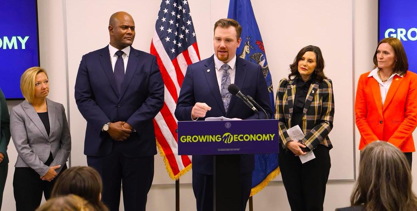 El representante estatal John Fitzgerald (DWyoming), impulsor de la Ley Pública 35 de 2024, se unió a la gobernadora Gretchen Whitmer, a la líder de la mayoría del Senado, Winnie Brinks (D-Grand Rapids), y a funcionarios locales para celebrar la implementación de esta legislación y sus potenciales beneficios para la economía local de Grand Rapids.