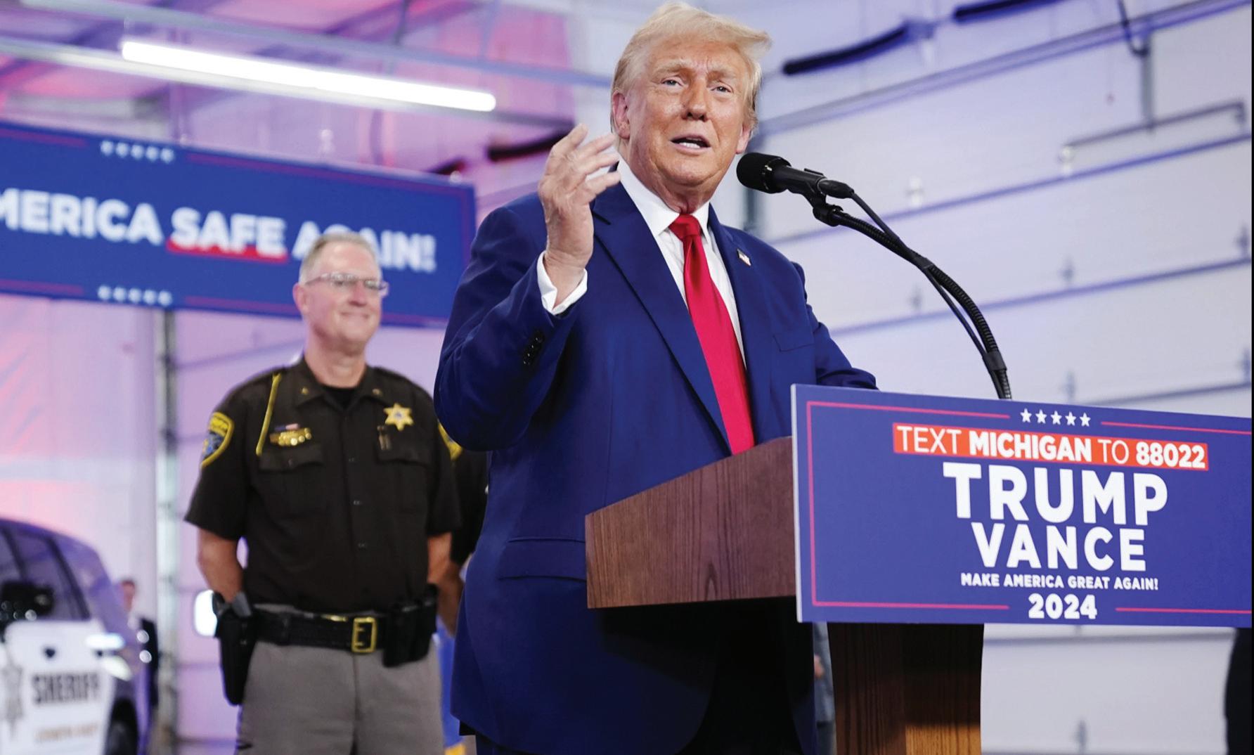 prometió a “reembolsar a la policía”, exagerando las estadísticas de criminalidad y acusando falsamente a Harris de querer desfinanciar a las fuerzas del orden.