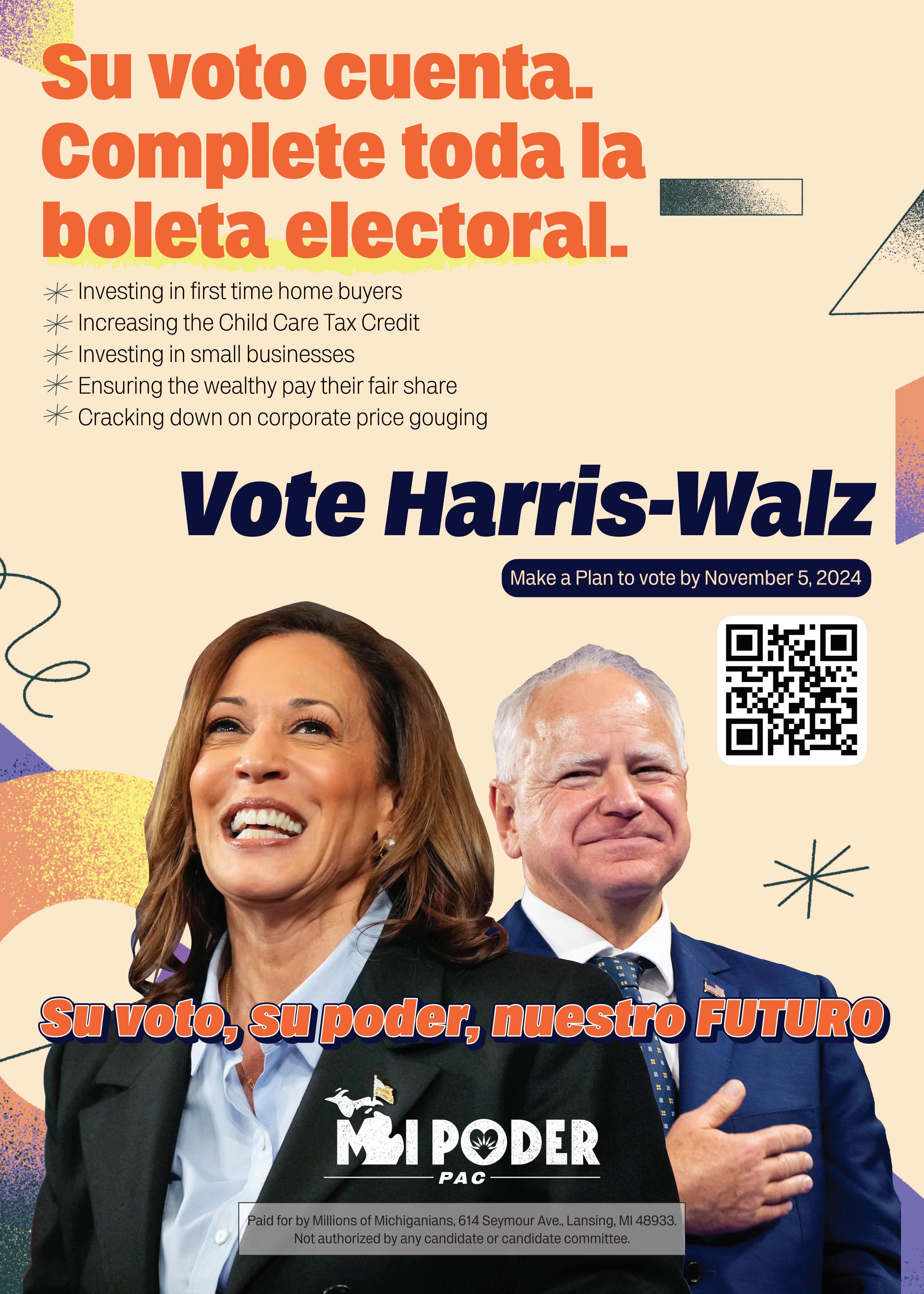que priorice la oportunidad y la inclusión para todos los ciudadanos. El evento, celebrado en Riverside Park, fue un momento clave en su campaña, ya que Michigan sigue siendo un estado decisivo en la contienda electoral. Con el voto ausente ya
