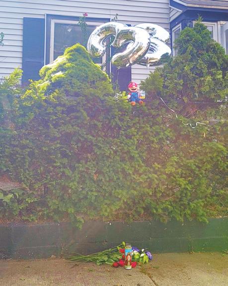 Cerca del lugar del tiroteo se levantó un altar en memoria de Campbell, con globos que forman el número 38, un ramo de flores, velas y un muñeco