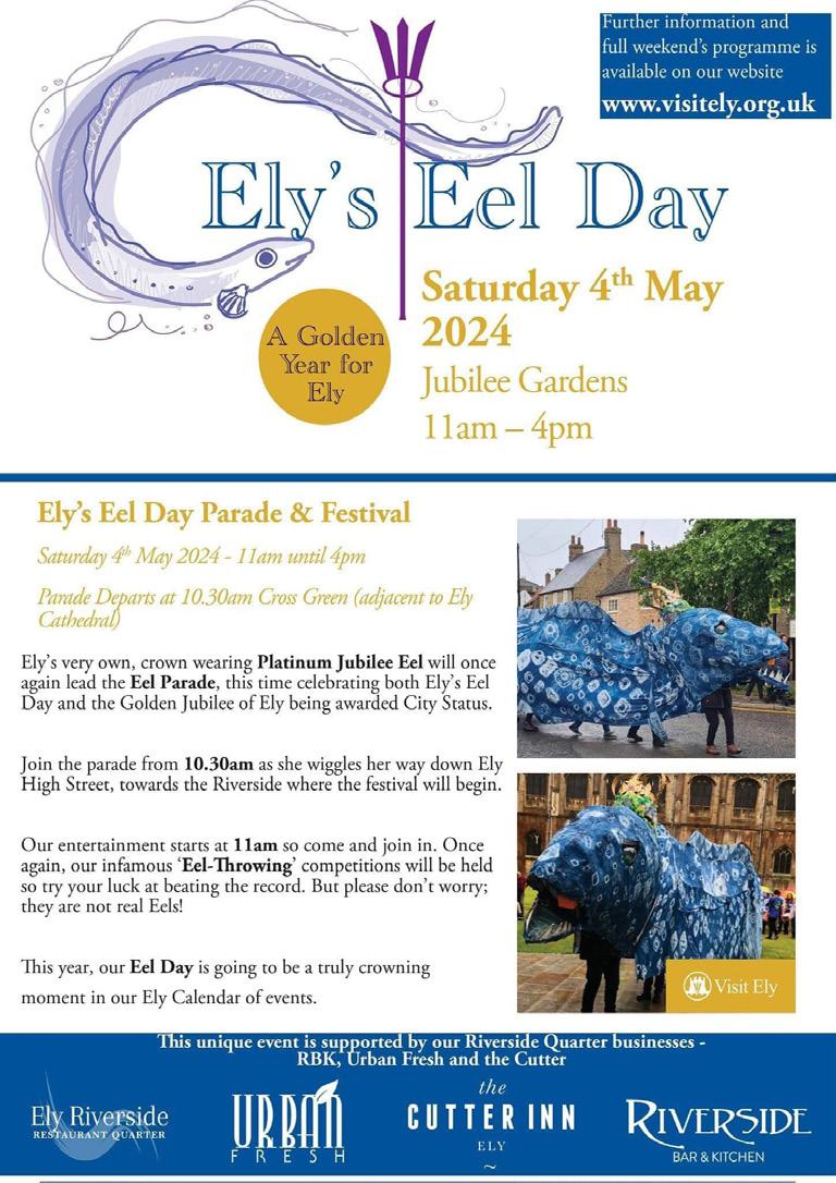 Thank you to everyone who has sent in info and events for the magazine. There are lots of lovely events happening over the coming months. The May Bank holiday weekend has Ely Eel Day on the Saturday followed by the now traditional Gift, Food and Craft fair on the Sunday and Monday.