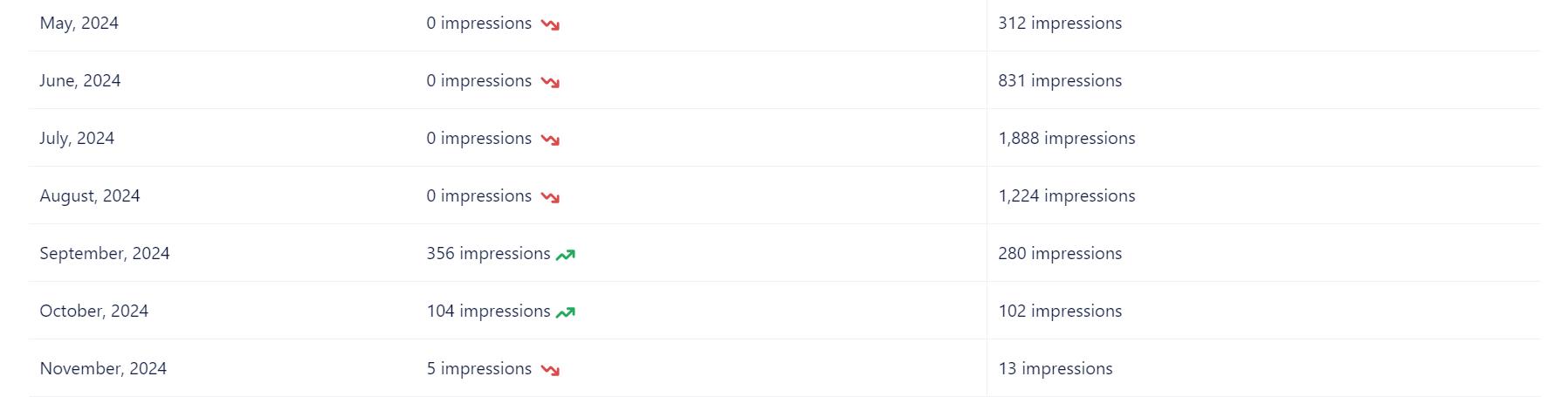 1st-page impressions: Search impressions are the number of distinct people who saw your listings on the first page of search results
