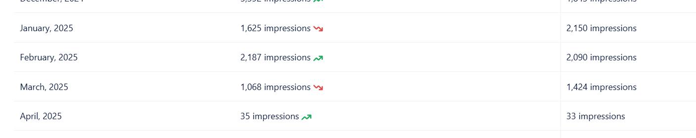 1st-page impressions: Search impressions are the number of distinct people who saw your listings on the first page of search results