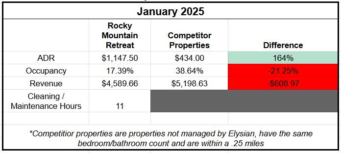 Every week, we're gaining momentum and capturing a greater share of the Winter Park vacation rental market. Here's a snapshot of our recent performance: