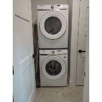 Washer Dryer- Clean around behind and underneath, Clean dust try in dryer and soap tray in washer