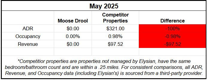 One area of continuous focus is our dynamic pricing strategy. We've listened carefully to your feedback, which often highlights a desire for both strong occupancy and optimal nightly rates. To achieve this balance, we have expanded our pricing range, allowing us to capture a wider spectrum of booking opportunities, especially during times of low demand. The initial results, like those from May, are promising. For instance, in the last week alone, we secured a same-day check-in for a week-long stay at $400 per night as well as a booking for the same property for March 2026 for five days at $1,600 per night. This demonstrates the elasticity we're working to harness. My biggest takeaway from the past year is the potential for strategic aggressiveness in pricing for every given month, and I will continue to refine our approach to maximize your returns.