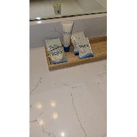 Amenities have been replaced? One toilet paper on roll, two backups, and sojo.