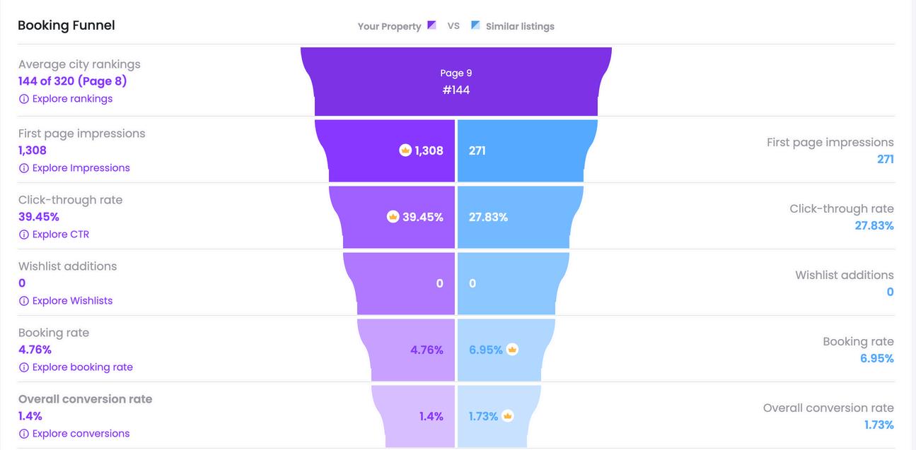 This report reflects the most current data as of 1st week of November 2025, showing how the property performs across each stage of the booking funnel.