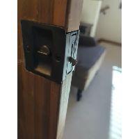 front door- clean,no squeeks, lock has battery, Weather strip and threshold