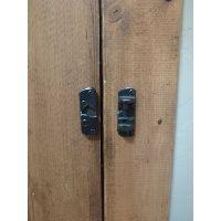 Could remove broken latch from the door and trim, just need wood putty to fill the holes.