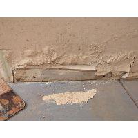 Water damage on the wall near the floor. Needs to be repaired and repainted