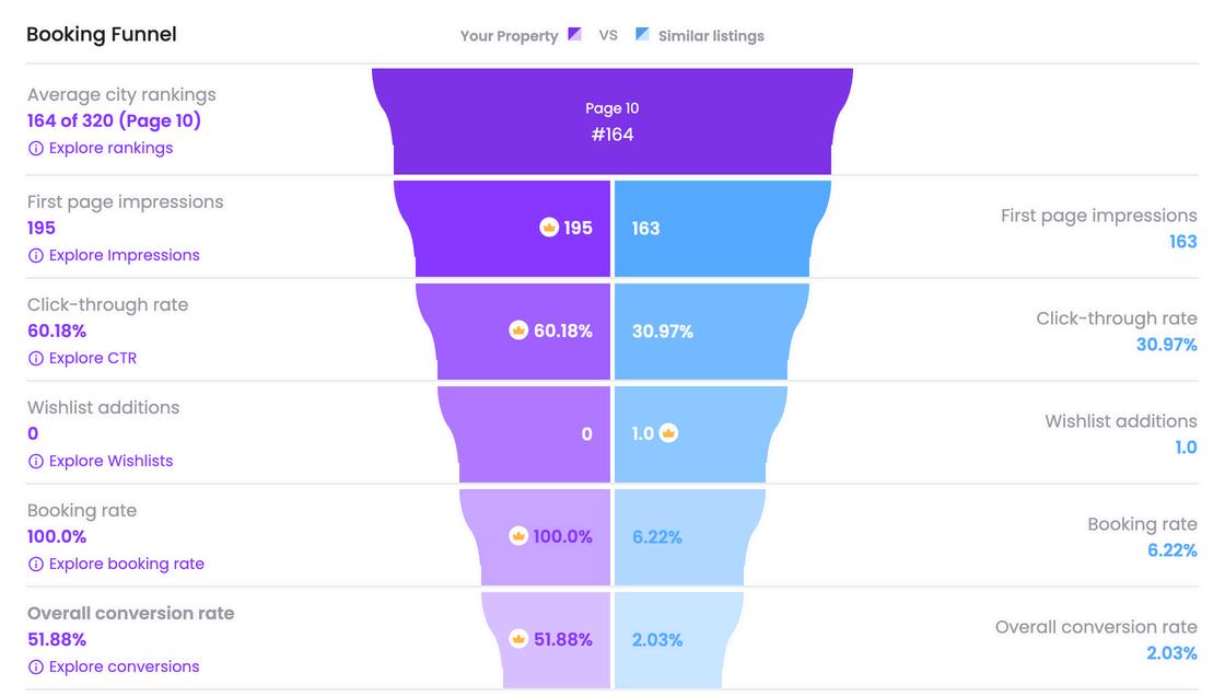Average City Rankings: Shows where your property ranks compared to all listings in the city.