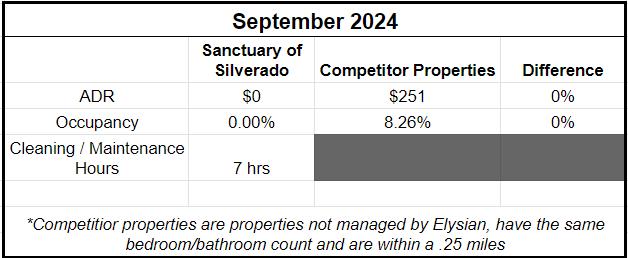 My directive to the team has been to outperform on traditional marketing platforms like Airbnb and VRBO. I'm pleased to share that Elysian properties consistently rank in top positions, demonstrating our commitment to maximizing your visibility. To further expand our reach, we're embracing innovative marketing strategies. We've curated partnerships with 4 social media influencers who will be featuring several of our properties between now and mid-December. Additionally, we're piloting a new paid advertising platform with a technology startup, initially focusing on two properties with the goal of expanding based on performance.