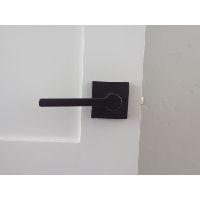 front door- clean,no squeeks, lock has battery, Weather strip and threshold