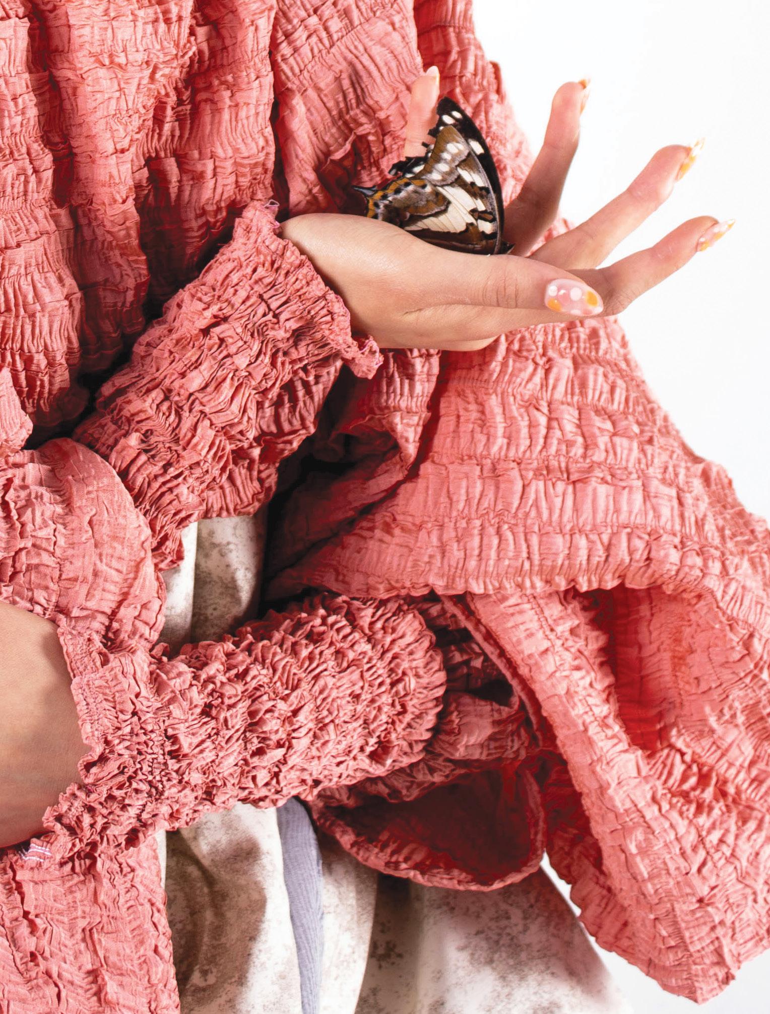 Butterflies and flowers work together to mutually flourish. By mirroring butterflies’ and flower’s visual qualities through imagery, there lies a focuses on symbiotic relationships between creatives, reflecting the importance of collaboration for people in the industry to flourish.