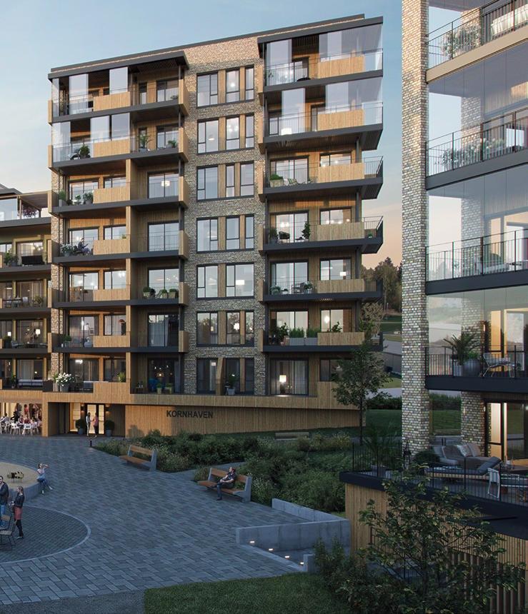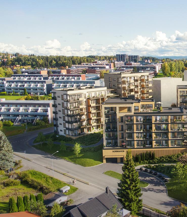 Kornhavens leiligheter er tegnet med tanke på komfort, kvalitet og funksjonalitet, slik at du kan nyte en enklere hverdag. Store vinduer, romslige balkonger og solid standard er viktige stikkord for Kornhavens leiligheter. Parkering i kjeller, heis opp til leilighetsetasjene og gode fellesfasiliteter. Kornhaven tilbyr deg gode kvaliteter både inne og ute - fra solrike uteplasser med vidstrakt utsikt til moderne fellesområder hvor du kan møte andre beboere. Her har arkitekt og utbygger lagt vekt på å skape et miljø som inspirerer til fellesskap og trivsel.