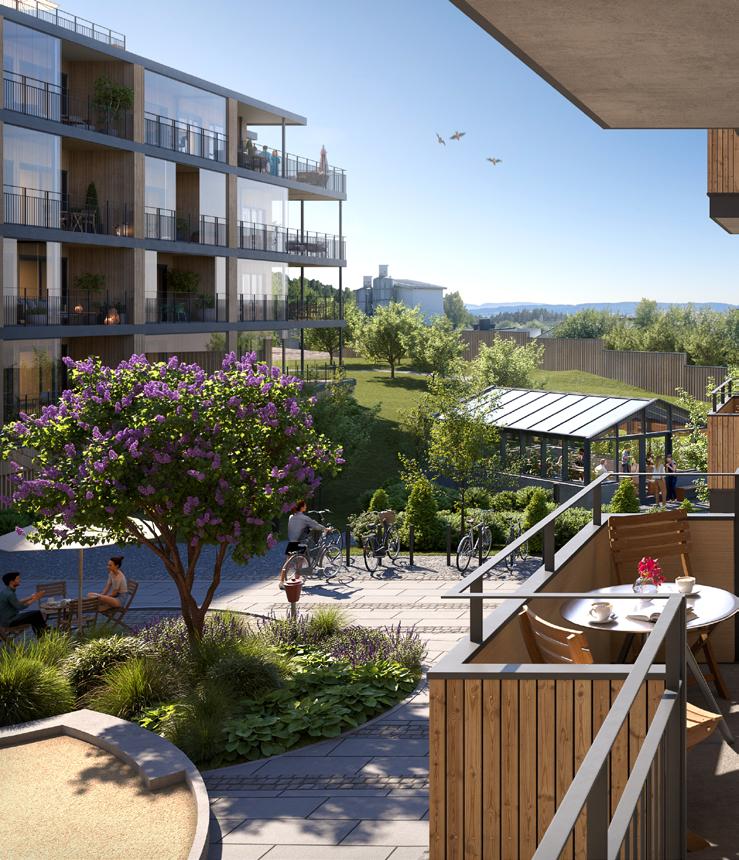 - Da vi startet med dette prosjektet var vi veldig opptatte av at det skulle legges stor vekt på sosial bærekraft. Torget, drivhuset, allrommet/selskapslokalet og andre fellesfasiliteter gjør at det går an å bygge et samhold her. Kornhaven blir det beboerne ønsker at det skal bli, og vi legger til rette for at veien til et godt nabolag skal bli litt kortere. Jeg tror folk vil sette pris på mulighetene for variasjon – at man både kan være sosial samtidig som at man kan trekke seg tilbake i egen leilighet og nyte utsikten fra egen balkong.