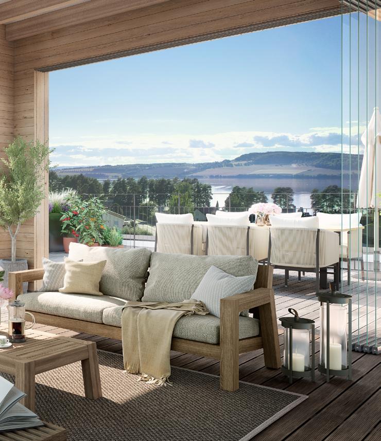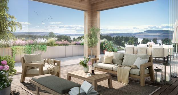 Store, luftige balkonger – der flere både har en åpen og en innglasset del - gir leilighetene det lille ekstra.
