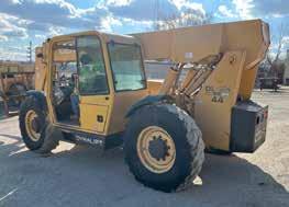 Lot 7- 2000 Gehl DL8H RT Forklift, SN 8H44JS50230631, (L24) rough terrain, 44’ boom height, 8,000 lb. capacity, 10,272 hours on meter, enclosed cab, heater, single joystick control, tire size 14.00-24TG, with 0% wear on the tires, quick detach mast, no auxiliary hydraulics, John Deere diesel, original paint and decal, paint is faded, good appearance, appears to function on routine basis, we understand the boom to be tight and not needing any maintenance, hydraulic cylinders does not leak, 4WD, functions on routine basis, believed to be in good mechanical condition overall, fair appearance, rust spots through the paint, the seat is torn down to the frame, appears the leveling cylinder seeps fluid, the engine cover hood has minor damage. Sells with owners confirmation. AM Cohron 62180 Great River Road, Atlantic, IA 712 243 2448 https://youtu.be/gau9SZQZtgA