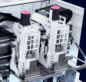 Einzigartiges Maschinenkonzept Zwei Arbeitsspindeln und zwei HochleistungsWerkzeugrevolver mit Torquemotor