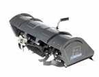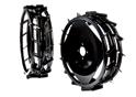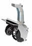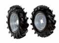 Front wheel for easy transportation of the machine. The wheel can be easily folded upward without tools to facilitate operations on the ground.