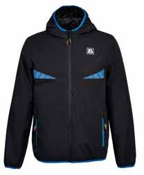 Details • Full zip, logo on front with 3D effect, collar sweatband customised with repeated logo, contrast stitching on shoulders, handy front pockets and zipped chest pocket, ergonomic zip pullers, inserts in windproof/ waterproof jacket fabric.