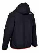 • Giacca full zip con cappuccio, logo su fronte e retro con effetto 3D, etichetta tricolore cucita su fianco imbottita con ovatta termica, profili elastici, tasche capienti, zip e tessuto con trattamento windproof/ waterproof, puller zips ergonomici.