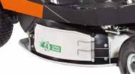 Versatile cutting system that includes mulching, collection and side discharge as standard, with optional deflector for rear discharge.