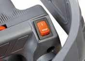 On/off switch that returns automatically to the “on” position after each stop, thus eliminating the risk of flooding the carburettor.
