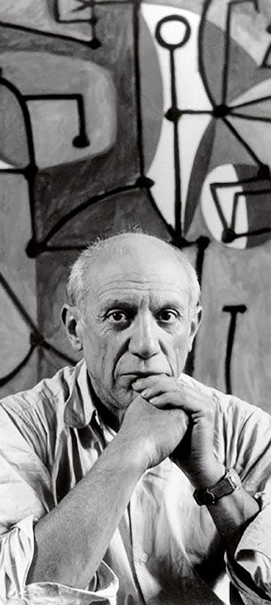 The focal point of this scene is the contrast between the gray patterns of the backgrounds and the attraction of the bright art pieces.