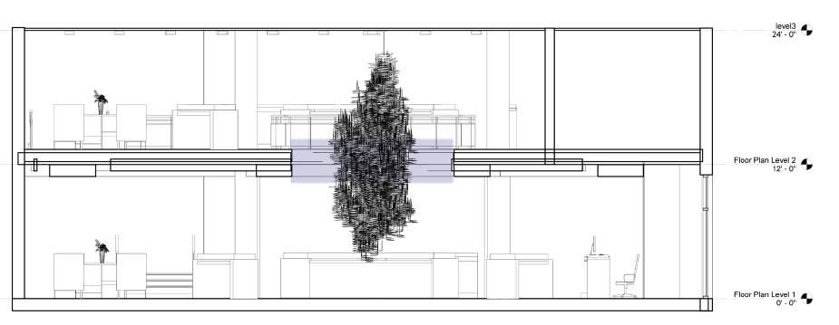 The chandelier the central of the building and it connects all the levels together with a sense of unity. It goes all the way down to the fountain in the basement level.