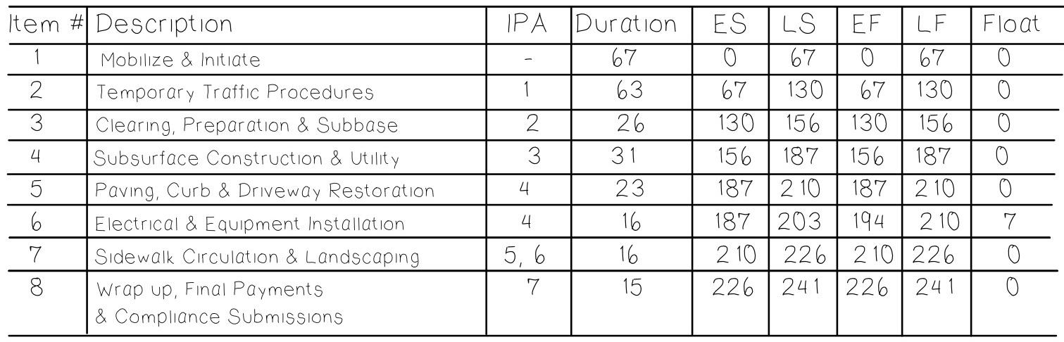 We, the contracting team for the NY Routes 242 and 353 Highway Reconstruction Project, are honored to have been selected to carry out, manage, and deliver this infrastructure improvement e ort. The following preconstruction report outlines our planned approach for construction and management throughout the life of the project. This includes descriptions of the work to be completed, key responsibilities of the construction and design teams, compliance with safety and environmental standards, the construction schedule and activity sequencing, selected materials and equipment, conceptual cost estimation, value engineering evaluations, and lean construction principles that will be applied to improve e ciency. This document serves as the foundation for how the project will be executed in the eld.