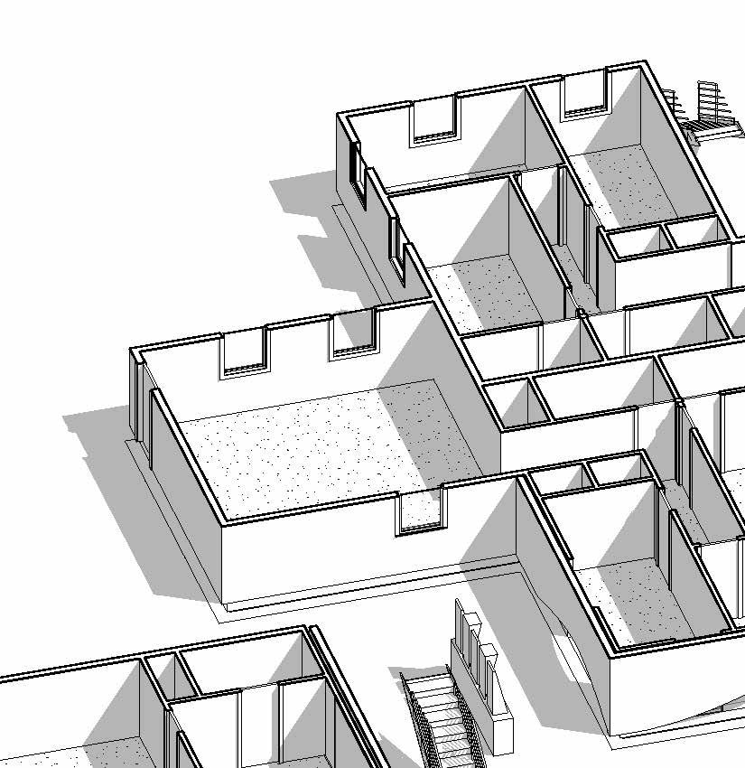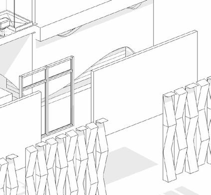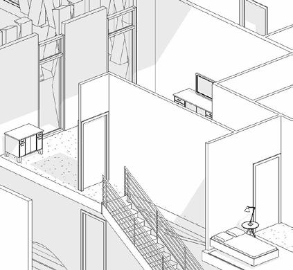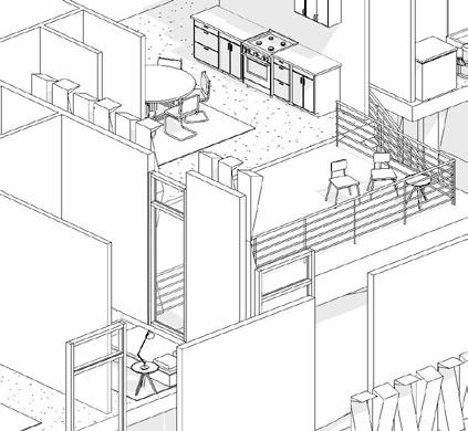 The 20 x 40 rectilinear platform looks to e ectively respond to both the project constraints--apartment size and program variation--and a ordable housing narrative/practicality dilemma. An initial mass pairing that creates an o set served as our foundation for interior and exterior space and program establishment.