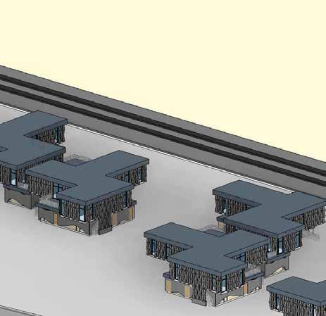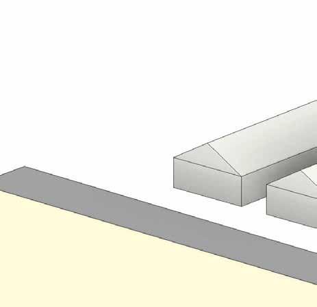 From top to bottom, a gradual evolution of the site massing. Single oors become double storied and the site sprawls West to East. Frontage is made available for parking around the cadence of each building.