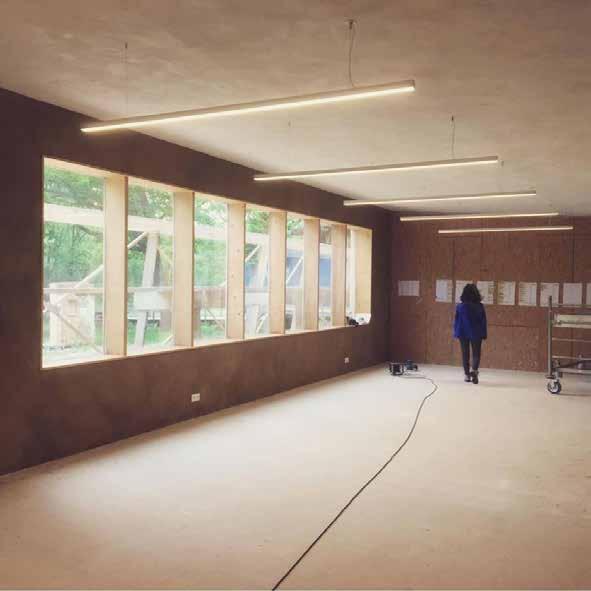 Le choix des matériaux se porta sur une structure bois avec un remplissage de terre allégée laissée d’apparence brute. Ce fut ici une première expérience heureuse et marquante avec le matériau terre.