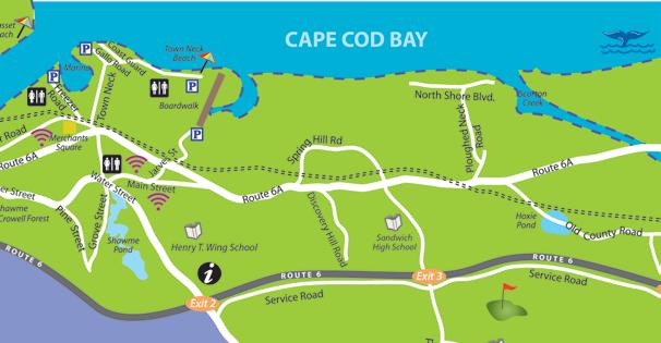 Public lots serving the Town Hall Annex and the Sandwich Public Library are located on Main St.