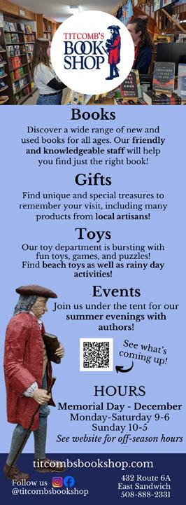 www.sandwichchamber. com 2024 / 2025 INSIDE: 30 DINING SPOTS AROUND TOWN FREE PUBLICATION Hikes We Like! Explore some fun trails Historic Adventures Exploring Museums Around Town Your Guide to: Dine, Shop, Explore & Relax