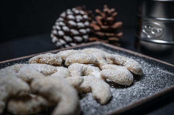 8. Pecan Crescent Cookies can be gifted in small tins, boxes, or filled inside of a mug.