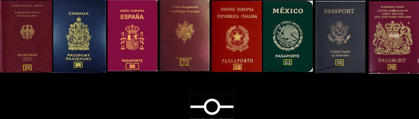 Todoslospasaporteselectrónicostienenenlaparteinferiormediadelaportadaun símboloqueloidentificacomounpasaporteelectrónico: