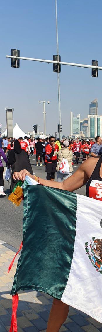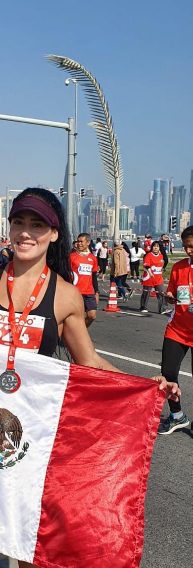 El MaratóndeDoha2023 se corrióel20deenero,enclaro aprovechamientodelafrescura invernaldeestalatitud.¡Dos mexicanasresidentespusieronen altoelnombredenuestropaís! AnilúDelaBarreda terminólos 42kmsdelMaratónysuperósu propiorécord,entantoque SoledadDomínguez obtuvoel segundolugarenel‘medio maraton’.Deuntotalde8 hombresy22mujeresmexicanas
