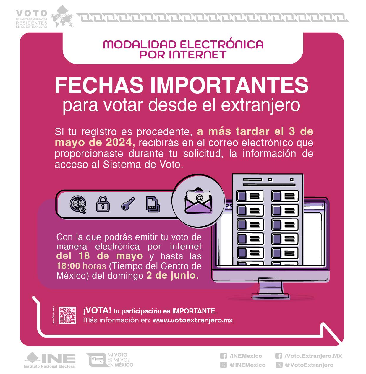 Si elegiste votar en modalidad electrónica por internet, debes conocer estas fechas para participar en las #Elecciones2024MX (Infografía1)