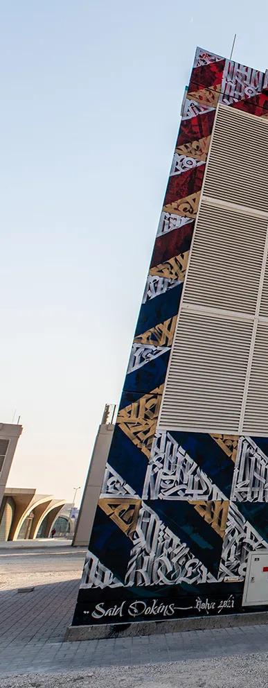En este número de tu revista Sawíka no podía faltar un espacio para seguir presentando la presencia cultural de México en Qatar. Hoy corresponde el turno al denominado mural “Magic Square”, del artista plástico mexicano Said Dokins, cuyo trabajo también está presente en murales en España, Alemania, Holanda, Bélgica, Reino Unido,Francia,China,Argentina,Chile, Brasil, Ecuador, Perú, Sudáfrica, Australia y desde luego México. En el caso concreto de “Magic Square”, es la primera obra que realiza su autor en el Medio Oriente y en un país musulmán, lo que constituye un guiño especial a este país y a su dinámica visión de arte contemporáneo, con énfasis en el arte público y urbano.