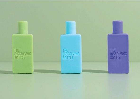 Como exemplos que envolvem também a embalagem, The Dissolving Bottle é um projeto que consiste em incentivar hotéis a adotarem xampus em barra como um meio de reduzir embalagens plásticas. E para isso deram ao xampu em barra um formato dos frascos de xampu amenities que são fornecidos nos hotéis.