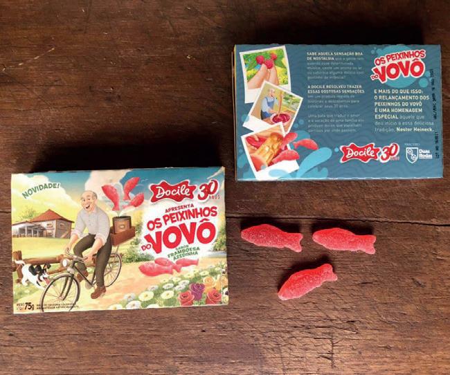 Ao resgatar a história da empresa, que comemora 30 anos em setembro, a Docile relembra as suas origens e relança o seu primeiro produto: “Os Peixinhos do Vovô”, criado pelo patriarca da família, Nestor Heineck. Ele mesmo as fabricava e entregava casa a casa, sempre acompanhado de seu cão e fiel escudeiro. As balas de framboesa azedinhas, no formato de peixe, voltam mais macias, mas com as mesmas características do passado. “Sabe aquela sensação boa de nostalgia que a gente tem quando escuta determinada música, sente um aroma no ar ou saboreia alguma delícia com gostinho de infância? A Docile resolveu trazer de volta essas gostosas sensações em um produto repleto de histórias e descobertas, afinal de contas estamos celebrando 30 anos. Uma bala que traduz amor e a vocação de uma família em produzir doces que espalham sorrisos por onde passam”, declara Seu Nestor.