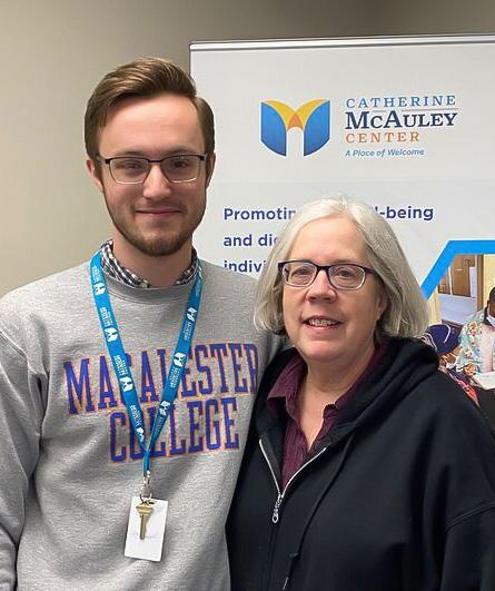 When Clower entered the mentorship program at the beginning of his service term with the Catherine McAuley Center (CMC), he was in the early stages of applying to grad uate school. Each week, Ehrhardt sat down with him to touch base on his progress and talk through decisions. Clower has since been accepted into the Humphrey College of Public Affairs at the Uni versity of Minnesota and will start classes toward a master’s in human rights in the fall.