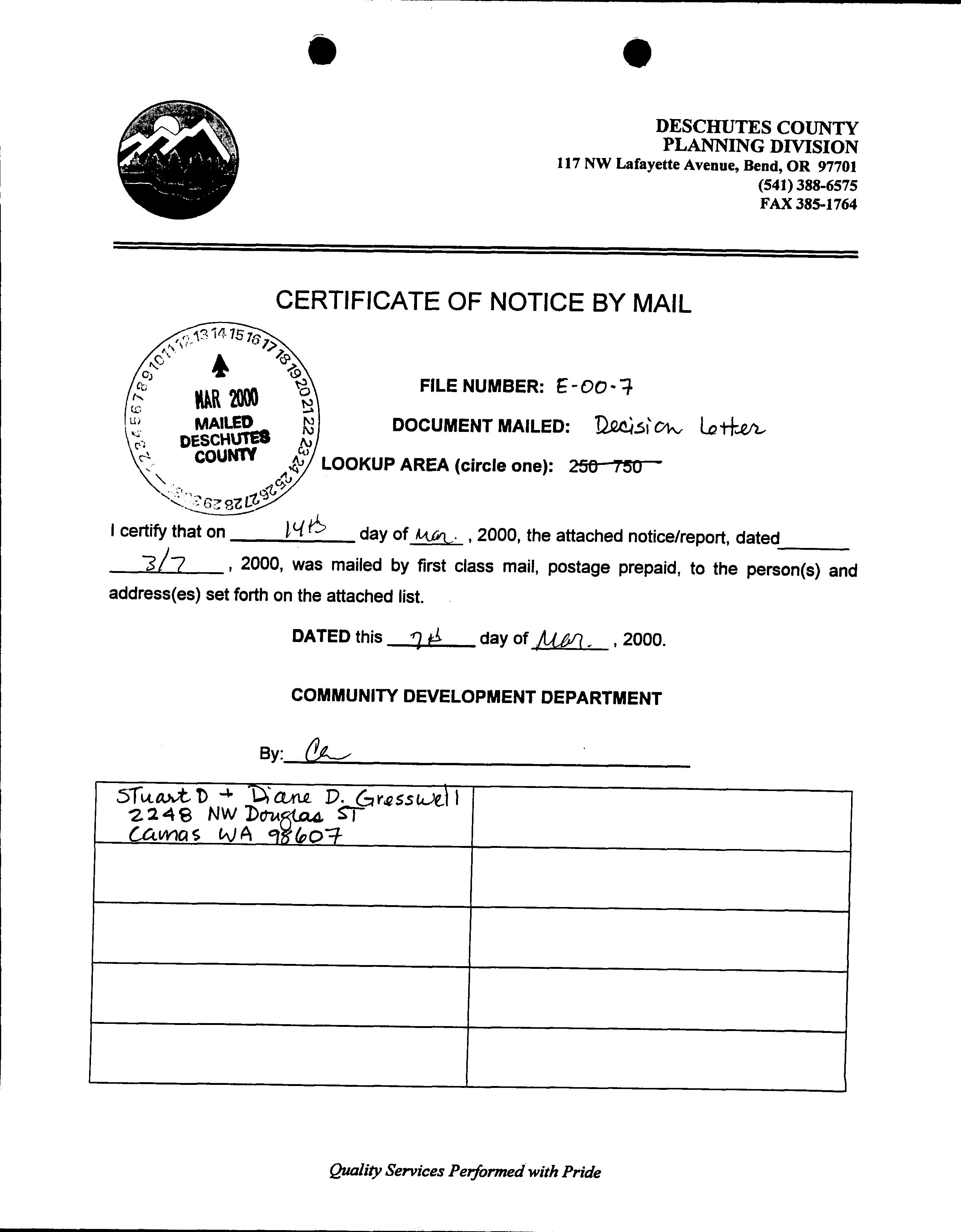 247-E007-PL Permit Number: STUART D. & DIANE D. GRESSWELL
