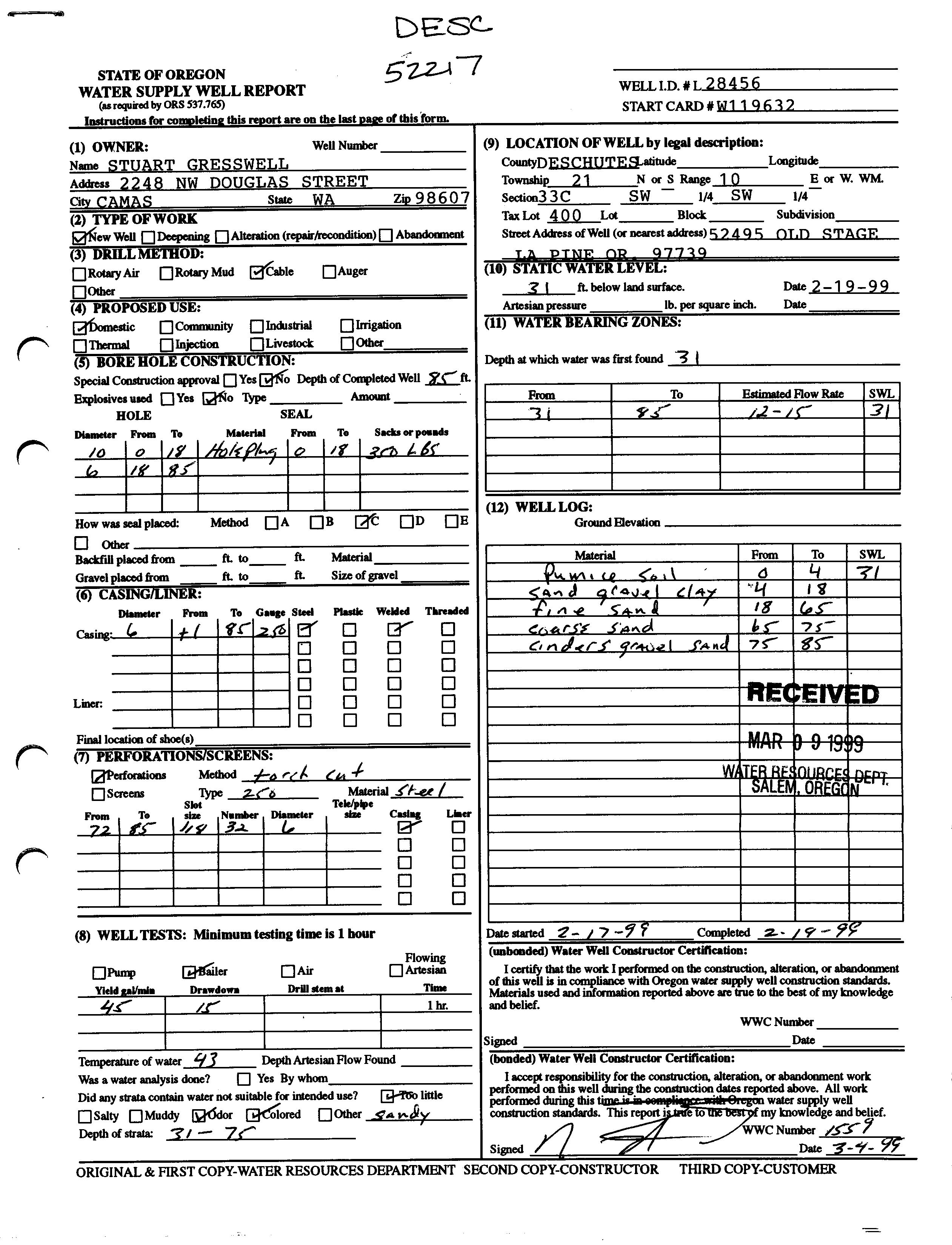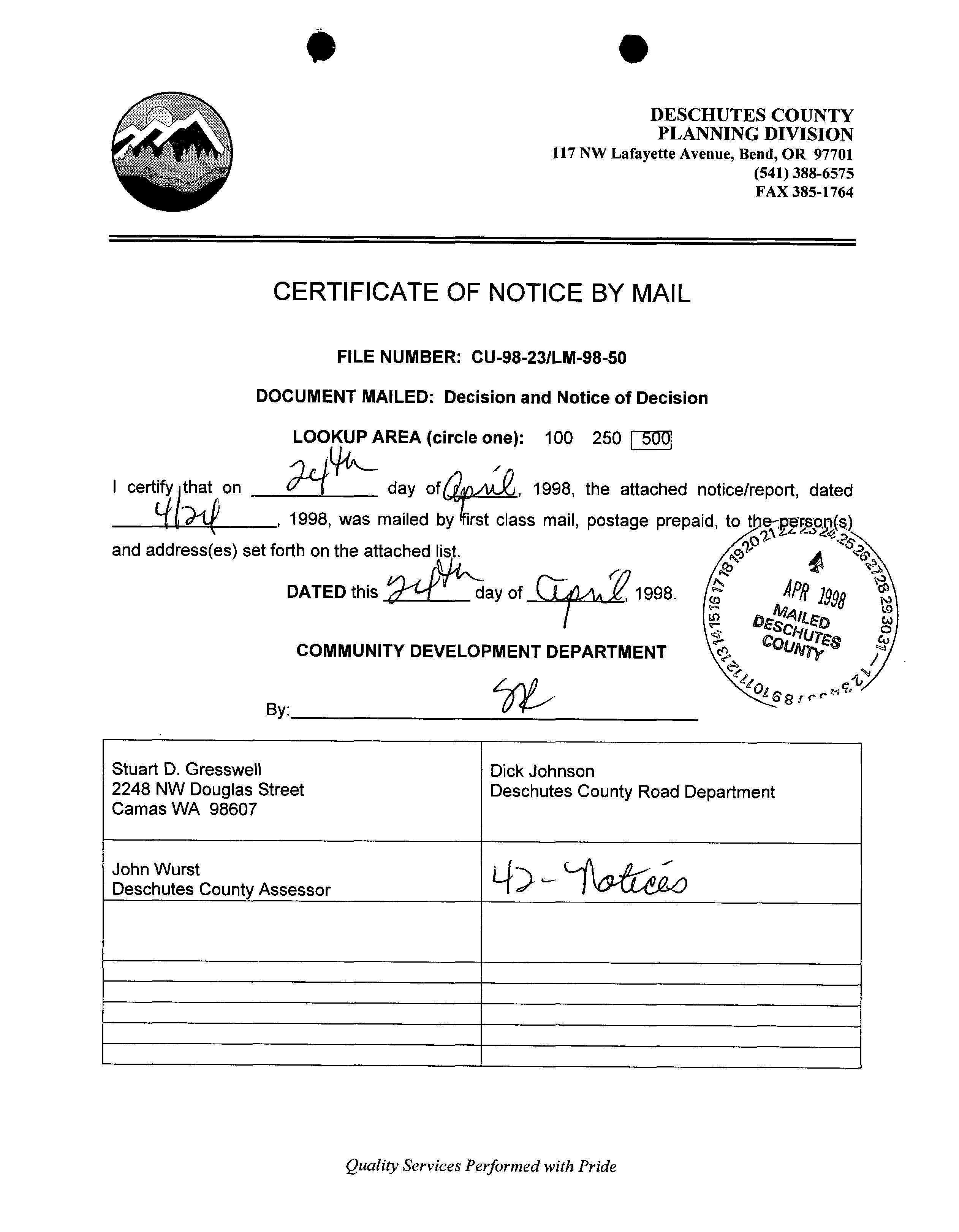 04/10/1998 LEL GC OLD SITUS= 15660 BURGESS RD,LA PINE