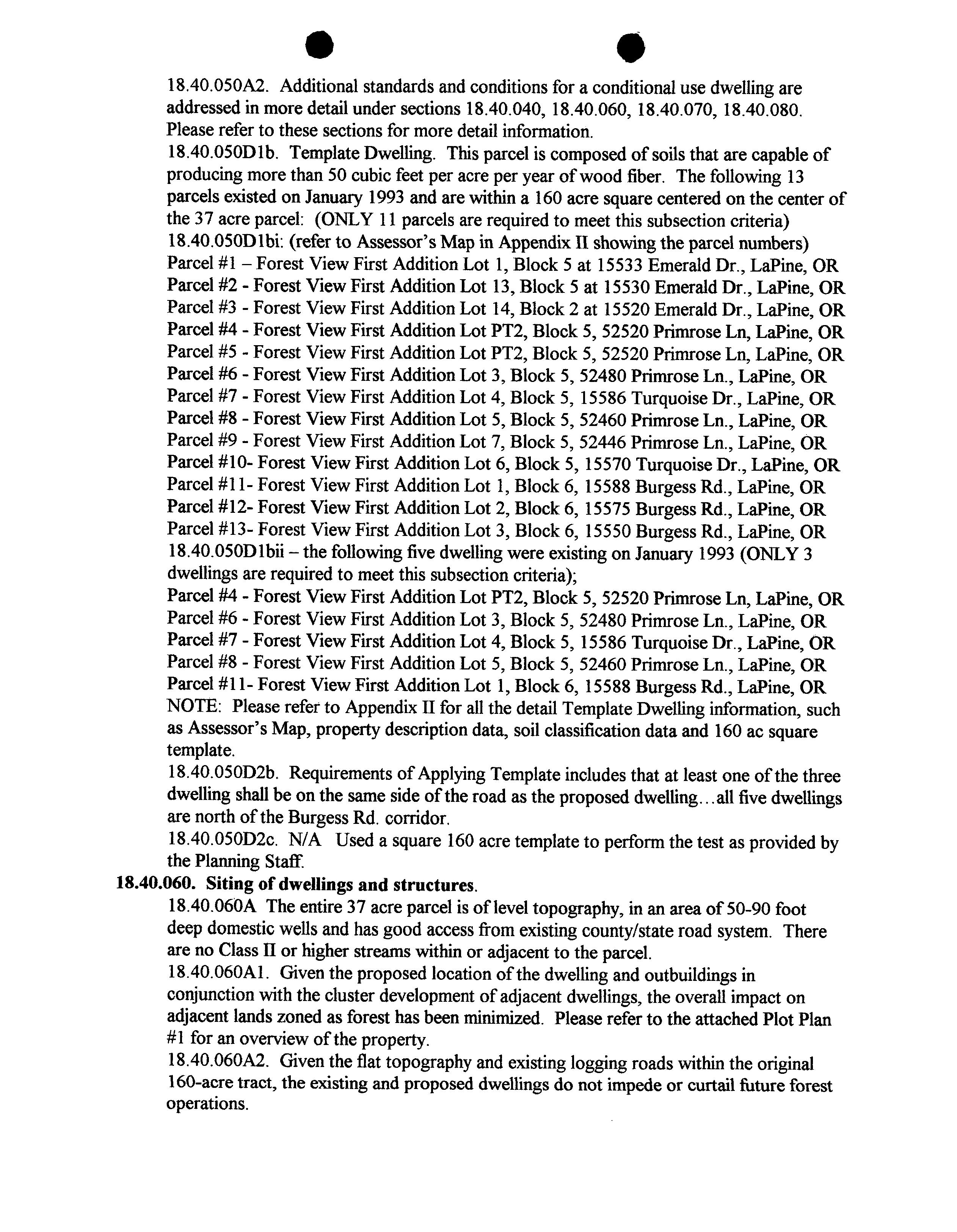 Review of digital records maintained by the Deschutes County Assessor’s Office, Tax Office, Finance Office, and the Community Development Department indicates that there are County tax, assessment, or property development related notations associated with this account and that have been identified above. Independent verification of the presence of additional Deschutes County tax, assessment, development, and other property related considerations is recommended. Confirmation is commonly provided by title companies, real estate agents, developers, engineering and surveying firms, and other parties who are involved in property transactions or property development. In addition, County departments may be contacted directly to discuss the information.