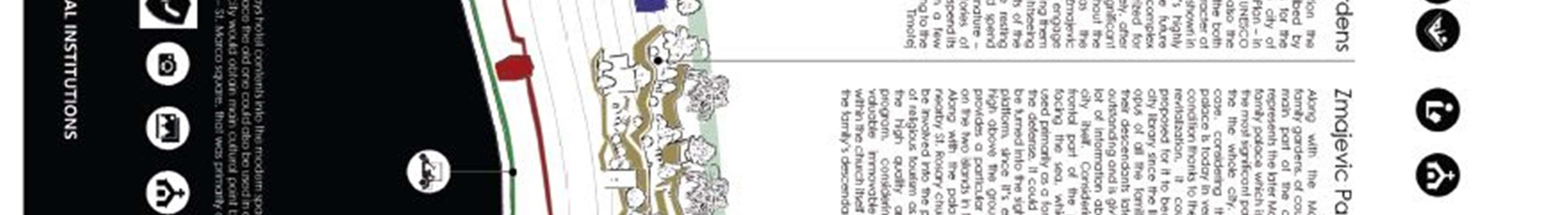 Conceptual solutions forthe model of landscaping of public areas have been developed forthe following urban plots: MJ - Viskovici garden and school yard and kindergarten MJ - square MJ - jardin in front of the Šestokrilović palace MJ - source of fresh water Bogliva MJ - square from the museum